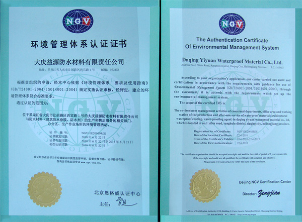 環(huán)境管理體系認(rèn)證證書